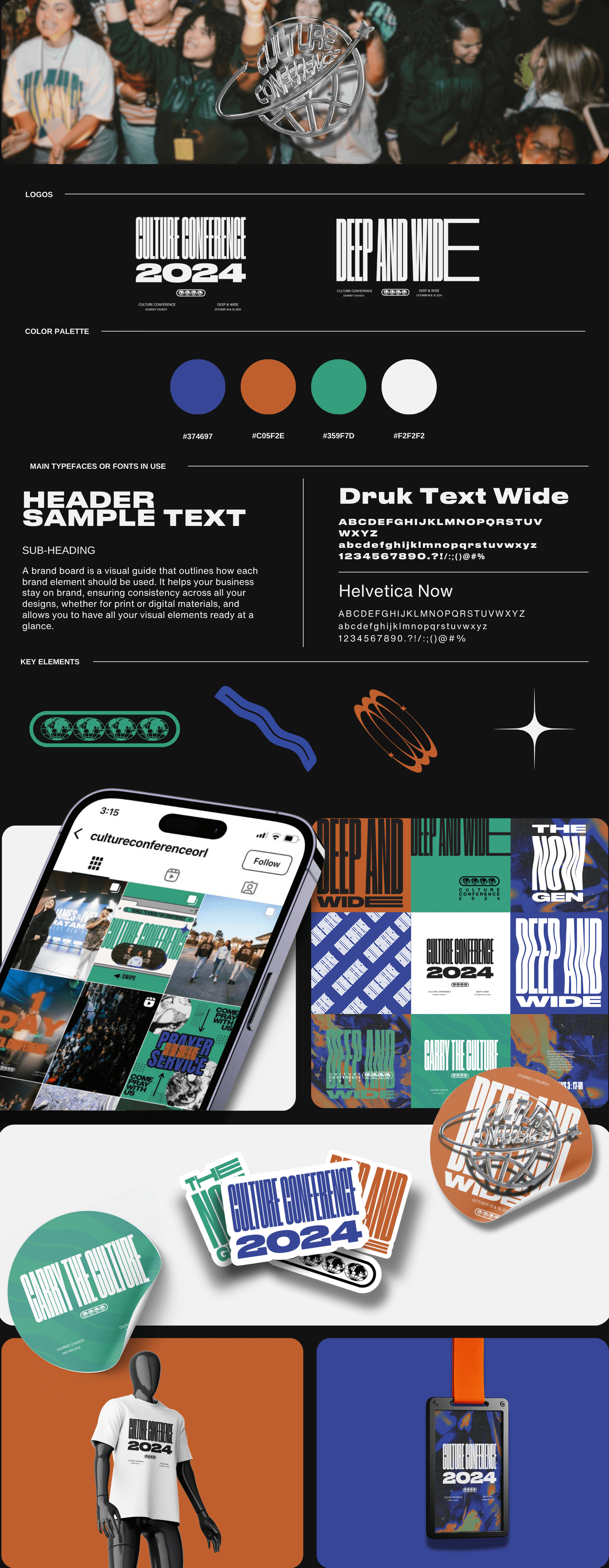 Culture Conference 2024 needed a powerful brand identity that could translate its abstract "Deep & Wide" theme into a tangible, exciting visual language. The system had to be dynamic enough to engage a youth audience on social media while being structured enough for on-site signage and print materials, ensuring a consistent and memorable experience for all attendees.